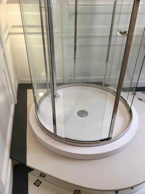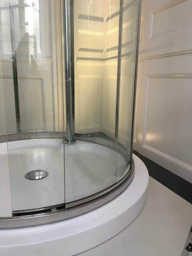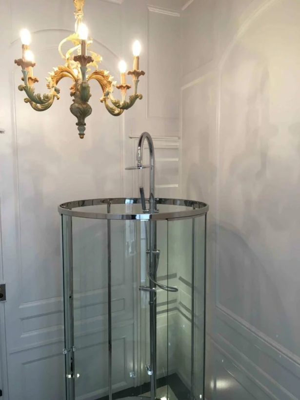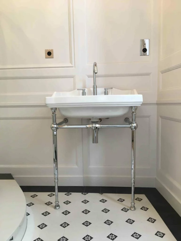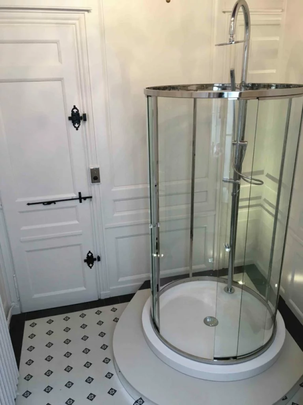 Boiseries d’époque pour salle de douche rétro